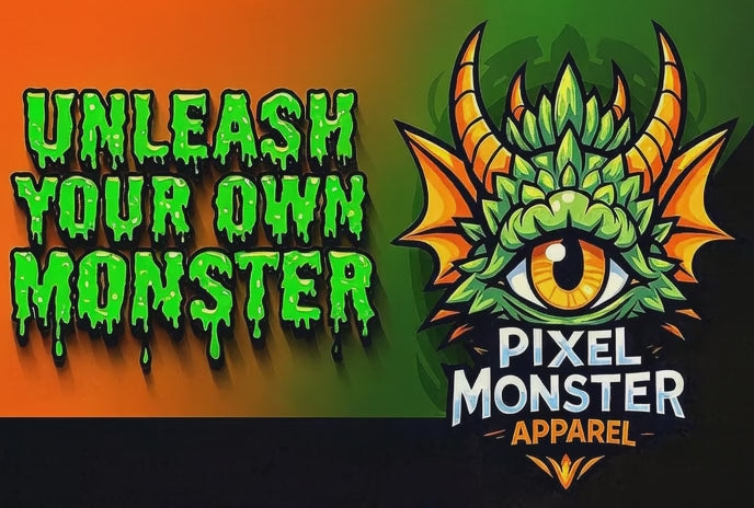 Gangland Vampire with Pixel Monster pocket logo T‑Shirt — Retro Gothic Vampire Streetwear Tee